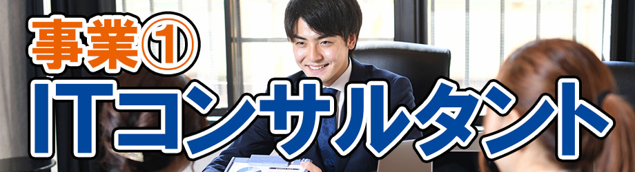 弊社では、ITコンサルタント事業として、(1)ITインフラ構築(2)業務DX化推進(3)セキュリティ強化(4)IT業務サポートの4つを中心に、クライアント企業の様々なニーズに合わせて柔軟な解決策をご用意させていただきます。